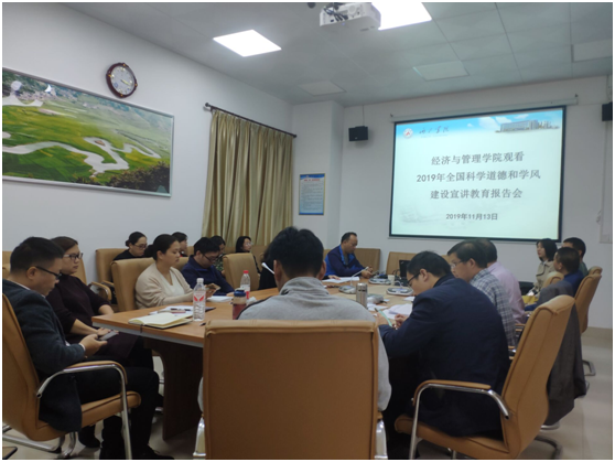 11月13日下午,必赢3003no1线路检测中心组织部分师生在图书馆122室收看2019年全国科学道德和学风建设宣讲教育报告会。学校分管科研副校长覃拥灵、各部门分管科研领导及科研秘书、科技处全体人员及少量学生代表收看宣讲报告会。